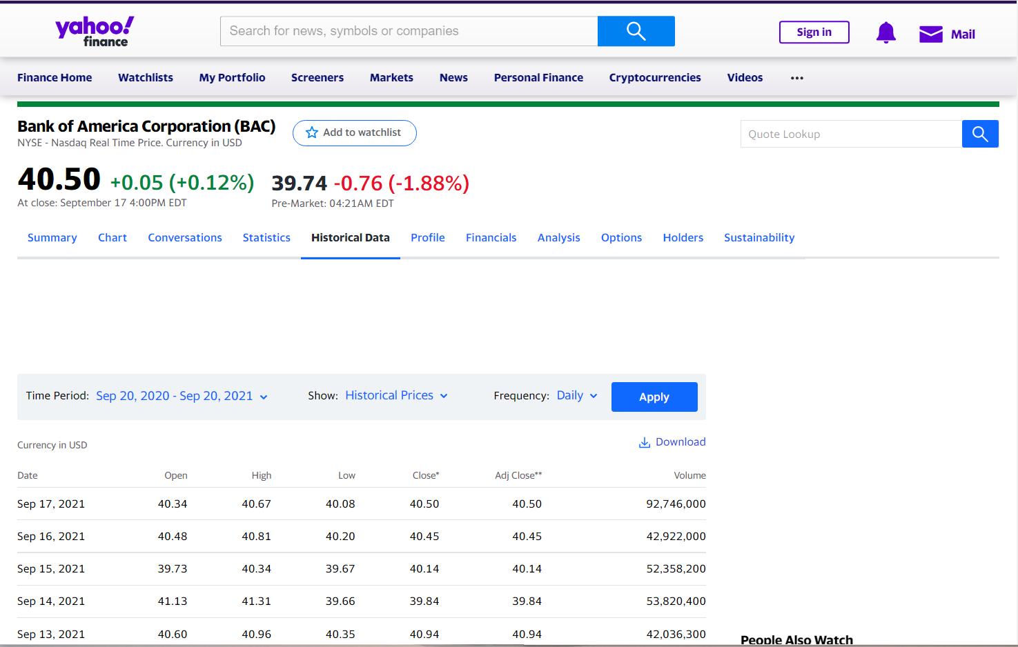 | 종목 | Bank of America Corporation (BAC) NYSE - Nasdaq Real Time Price. Currency in USD |