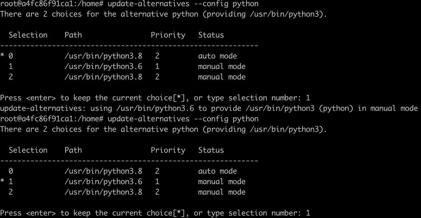 파이썬 설치가 끝났는데 기존에 설치된 파이썬이 있다면 버전을 바꿔주어야 한다. update-alternatives 명령어로 파이썬 버전을 바꿔줄 수 있다.