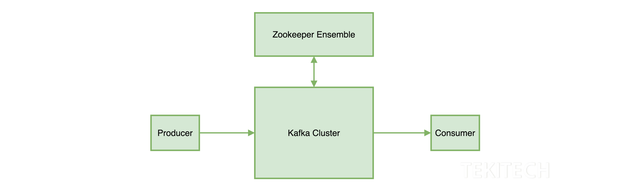 - 주키퍼Zookeeper 또는 주키퍼 앙상블Zookeeper Ensemble : 카프카가 정상적으로 동작할 수 있도록 카프카의 메타데이터 저장, 브로커의 노드 관리 등의 역할을 하는 애플리케이션 또는 그 앙상블