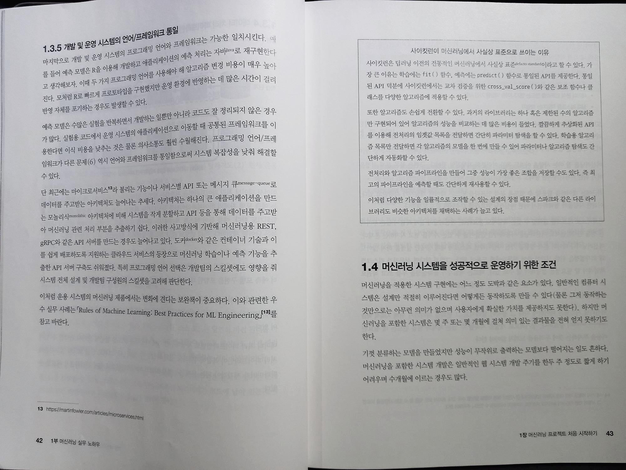 1.4 머신러닝 시스템을 성공적으로 운영하기 위한 조건